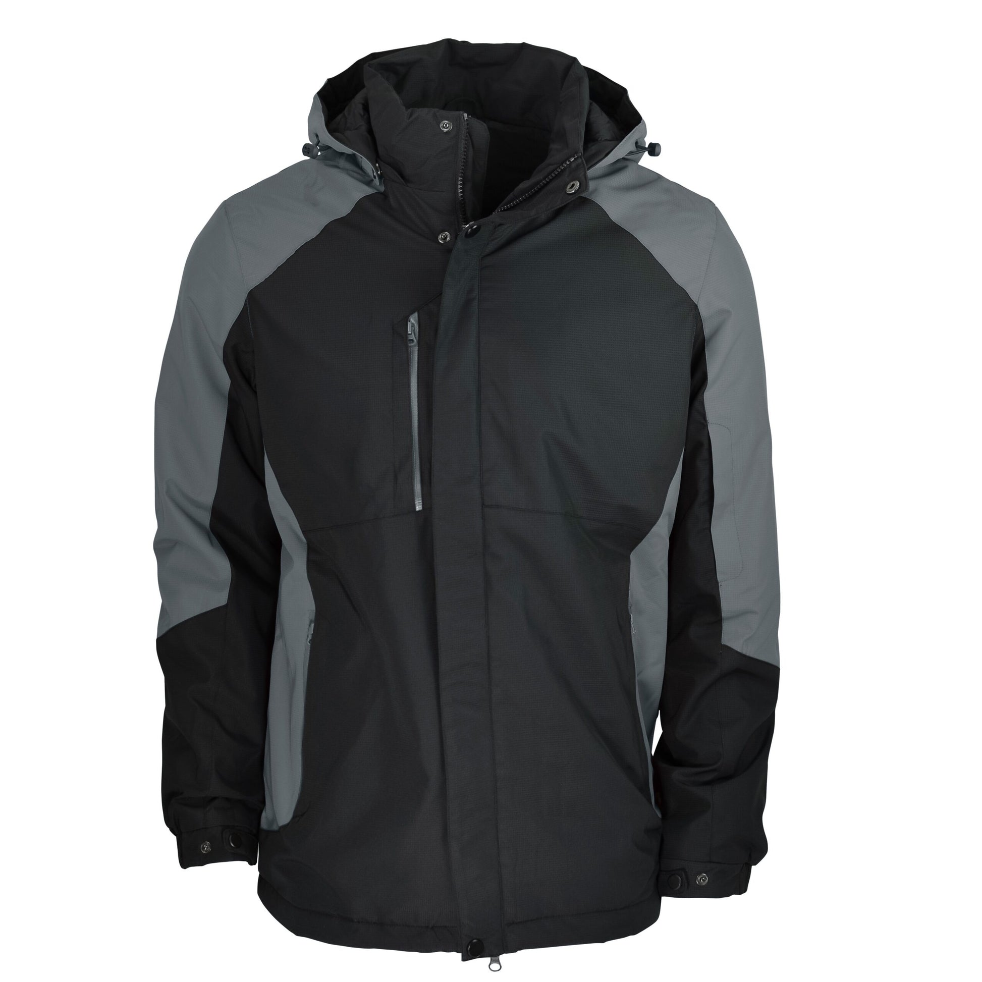 Features: 6 pockets - 1 zip chest, 2 zip side, 2 internal zip 1 concealed zip sleeve pocket Detachable hood with peak Extra body length with twin head main zipper Adjustable elasticated cuff Internal zipper access for decoration