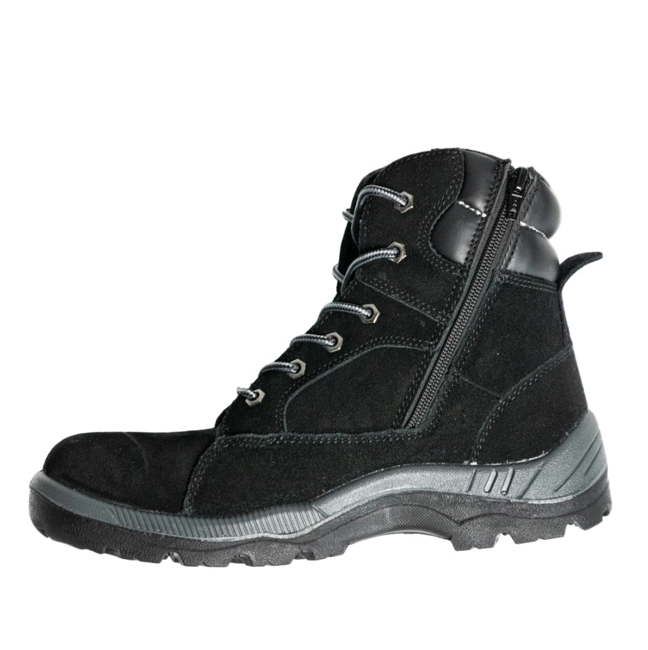 A great option for the construction and logistics worker as wel as weekend warriors. With leather upper, padded tongue, padded collar, heavy duty YKK® zip, PU Midsole for cushioning and durability and PU Comfort footbed to absorb the stress of every step. The protective steel toe cap will keep you safe. Outsole: Dual density PU/PU for lightness and cushioning as well as slip resistance to help keep you upright on slippery surfaces.
